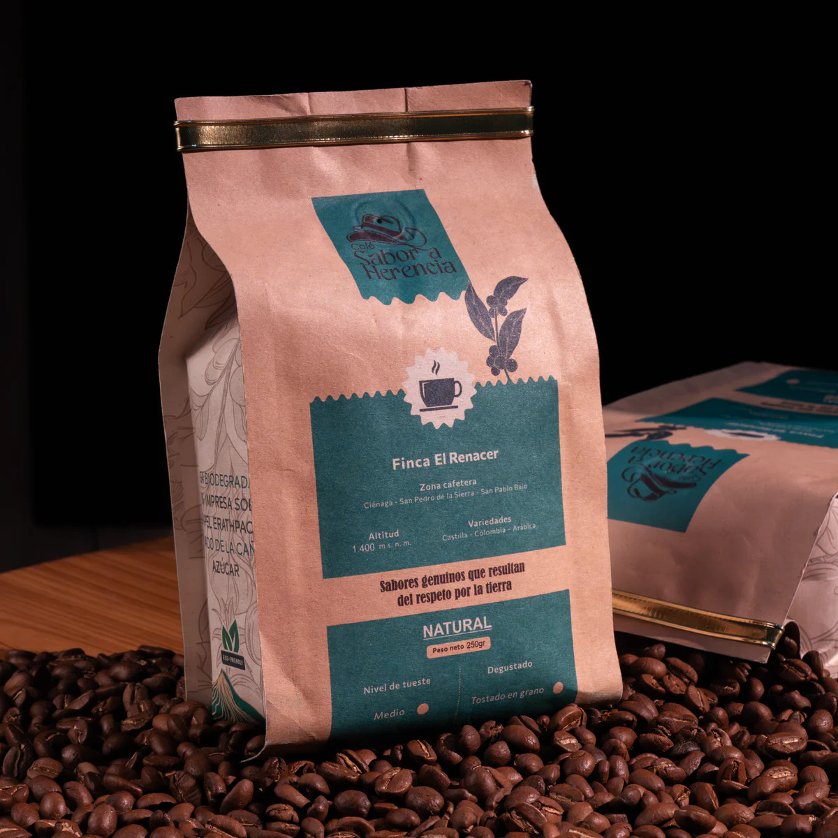 Un café de origen único cultivado a 1400 m.s.n.m. en la Finca El Renacer. Notas dulces, frutales y un cuerpo achocolatado que despierta el alma.